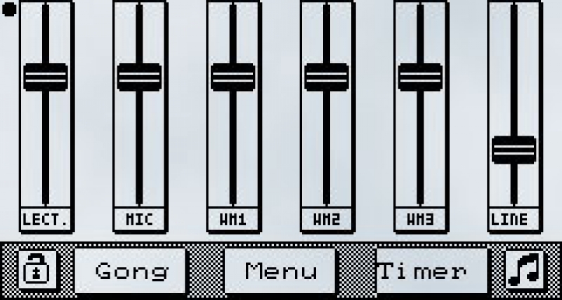 The touch panel offers in addition a lot of useful features. E.g.: The sound of a gong can be activated or a watch monitoring the time limit of a speech can be displayed. The levels of all input signals or the battery status are accessible via the central menu.