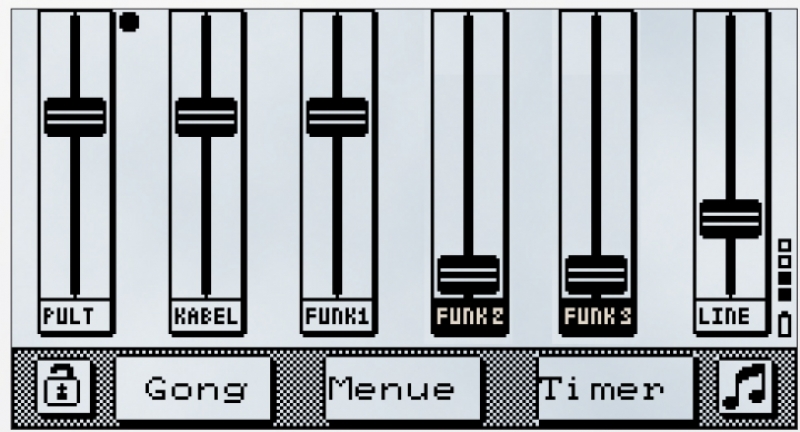 | Touchscreen: | Virtueller Mixer, zu 6 Lautstärkeregler |
