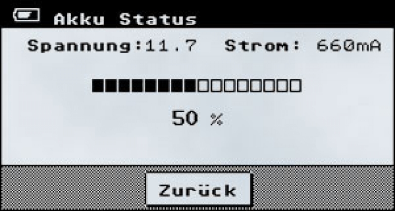 Anzeige der aktuellen Akku-Messwerte, Kalkulation der verbleibenden Kapazität