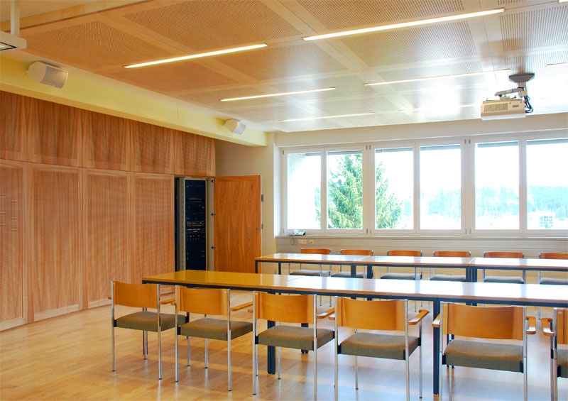 Die Lösung umfasst eine intuitiv zu bedienende Mediensteuerung, weiters die Beschallung, Video - Doppelprojektion, Konferenzmikrofonie, die Vorbereitung für externe Medien und Anwendungen wie z.B. Videokonferenzen sowie umfangreiche Schnittstellen zum Anschluss von aktueller Präsentationsmedien.