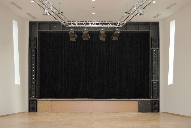 Schwarze Kisten sollten das Erscheinungsbild des Saales nicht stören, also wurde ein digital gesteuertes ITEC FocusLine PA-System nicht sichtbar in das Bühnenportal integriert. Dieses sensationelle System ermöglicht perfekte Schallverteilung über die gesamte Länge des Saales und optimale Beschallungsergebnisse bei unterschiedlichsten Veranstaltungen. Egal ob Podiumsdiskussionen, Seminare oder musikalische Live-Darbietungen, die Beschallung ist in Bezug auf Leistung, Dynamik und Klangqualität perfekt dimensioniert. Die bewährte FocusLine Technologie machts möglich.