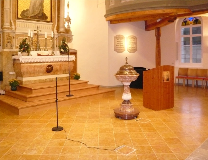 Die evangelische Kirche in Bad Goisern ist medientechnisch bestens ausgestattet. Die Beschallung (innen und außen) wurde natürlich auf optimale Sprachverständlichkeit ausgelegt und mit 6 kabelgebundenen Mikrofonen sowie 4 Funkmikrofonen ist genügend gestalterischer Spielraum gegeben.