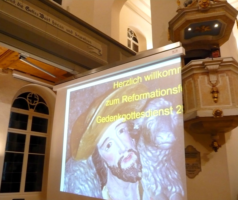 Aber auch an die visuelle Begleitung des Geschehens ist gedacht. Die schwenkbare Leinwand, im eingefahrenen Zustand kaum sichtbar, kann bei Bedarf im Kirchenraum elektrisch ausgefahren werden. Der lichtstarke Projektor liefert perfekte Bilder von DVD, Laptop oder Kamera.