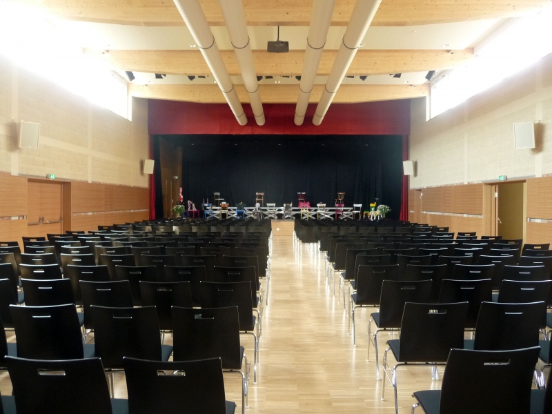 Bei Veranstaltungsräumen mit Mehrzweck-Charakter ist vor allem Eines sehr wichtig: Flexibilität. Dazu ist beispielhaft das digitale Audio-Multicore-System zu erwähnen, welches den Anschluss des mobilen Regiemischpultes an mehreren Stellen im Gebäude über kostengünstige, strukturierte CAT5-Verkabelung ermöglicht (auch im Bereich der Außenbühne).