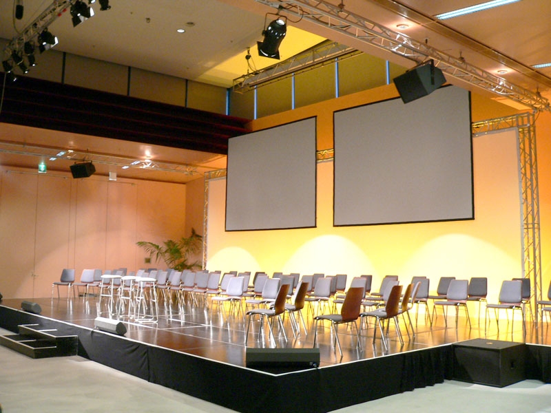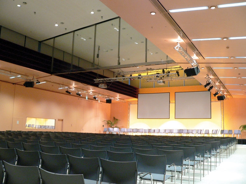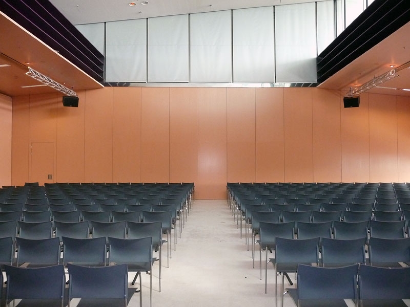 Da der Saal auch teilbar ist, wurden mehrere kundenspezifische Anwendungsszenarien Controller-seitig vorprogrammiert. Diese können entsprechend der Raumkonfiguration per Knopfdruck eingestellt werden. Weiters wurden auch diverse Komponenten für die Regieraumausstattung geliefert.