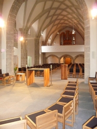 - Elektronische Liedanzeigetafeln für Kirchenschiff und Altarraum
