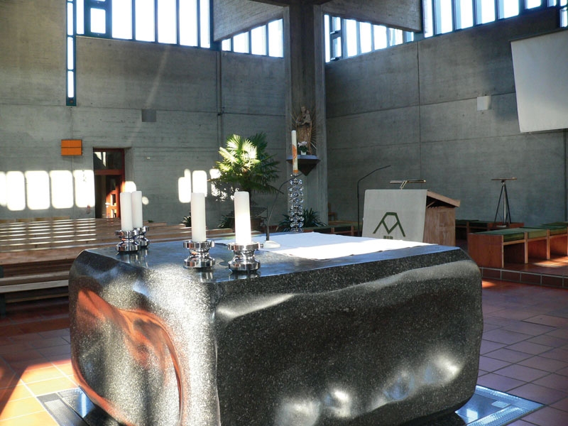 Eine andere Art der Lautsprecherinstallation wurde durch die zentrale Position des Altars, durch große räumliche Abmaße (die Kirche misst im Grundriss immerhin 30 x 30 Meter, und fehlende Montagepositionen (Säulen etc.) erschwert.