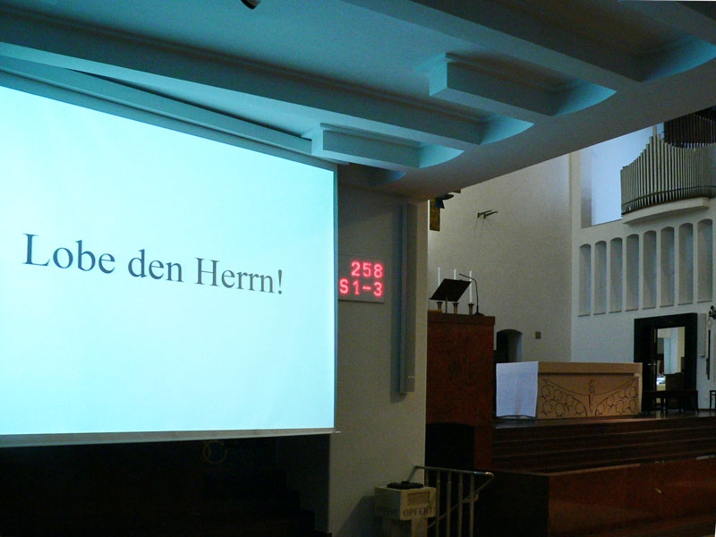 Zur Ankündigung von Liednummern und Strophen wurden zwei ITEC Liedanzeigetafeln installiert. Die Eingabe der Nummern erfolgt über eine handliche Fernbedienung. Durch Funkübertragung zwischen Eingabefernbedienung und Anzeigetafel kann die Bedienung praktisch überall in der Kirche erfolgen.