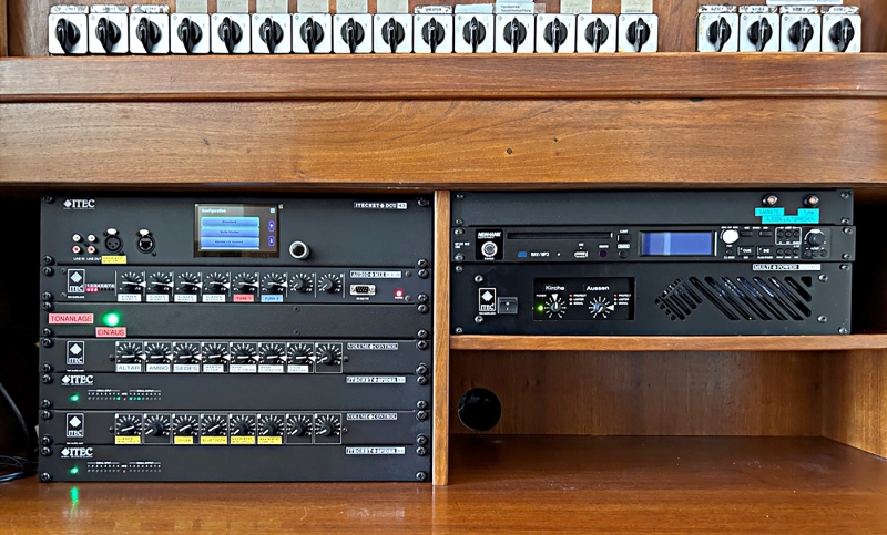 Systemkomponenten: digitale Audiomatrix ITECNET Spider88, ITEC AudioMix 8/4, ITEC MultiPower Verstärker, ITEC Tonsäulen der ITEC NeoSlim-Serie, Mikrofone der PA7-Serie sowie ITEC Funkmikrofonanlagen.