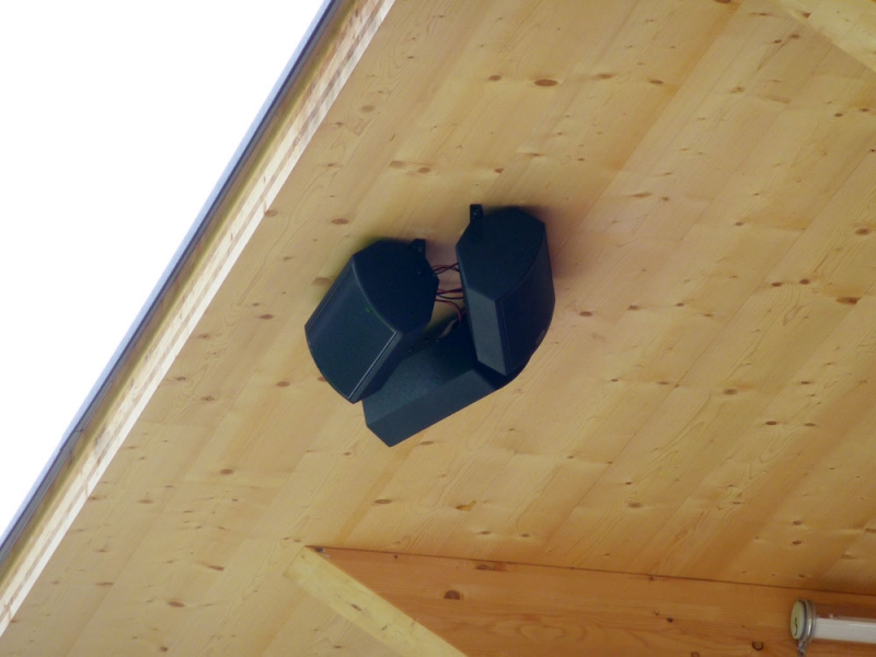 Hier geht es vielmehr um den FC Stainz, den Sportplatz und die neue Tonanlage. Über den Sitzplätzen der Tribüne, mit bestem Blick über den gesamten Platz, sind die Sprecherkabine und die Technikzentrale untergebracht. Die getrennt regelbaren Beschallungsbereiche umfassen das Fußballfeld, die Tribüne, den Trainingsplatz und das Café. Die Funkmikrofone können auf Grund der günstigen Antennenpositionierung störungsfrei im gesamten Areal eingesetzt werden.