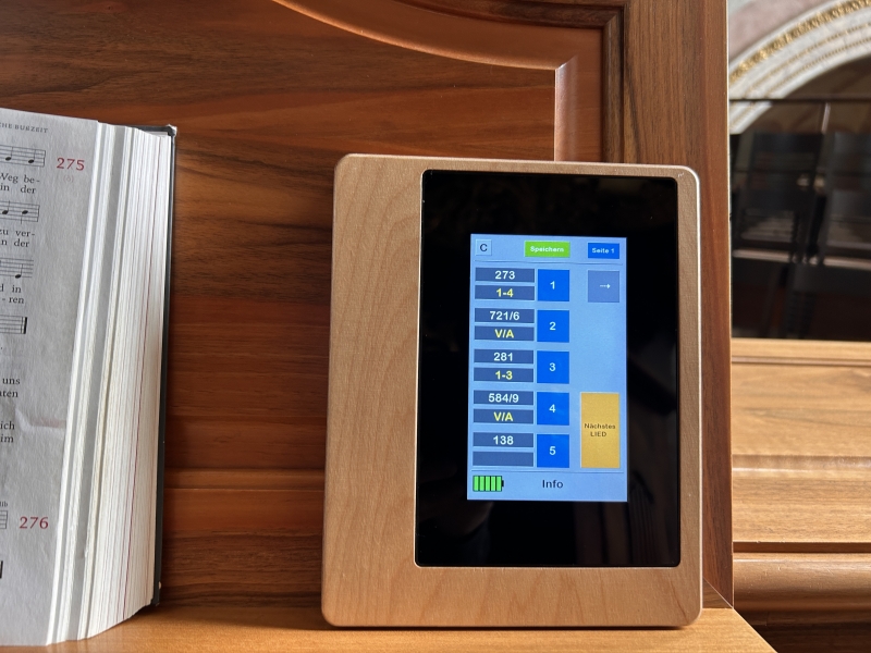 Aufgrund der jahrelangen Zufriedenheit mit unserem Beschallungssystem in der Stiftskirche wurde auch ein neues Liedanzeigesystem von ITEC angekauft.