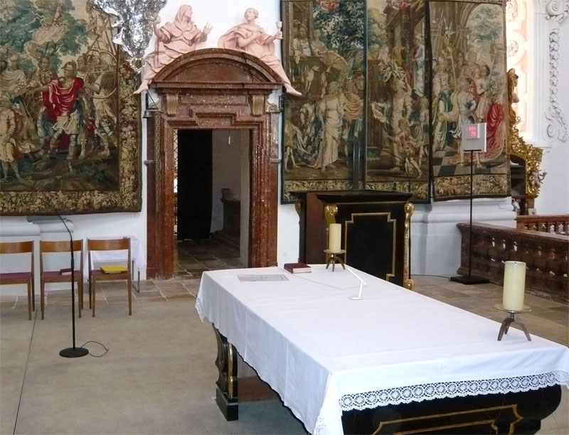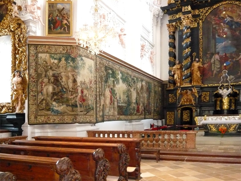 Der reich ausgestaltete barocke Innenraum der Stiftskirche Garsten weist neben wundervollen Stuckarbeiten, bedeutenden Gemälden und künstlerisch wertvollen Altären noch eine weitere Besonderheit auf: die einzigartigen Wandteppiche niederländischer Herkunft, die auf vielen Metern Länge die Wände des Altarraums schmücken.