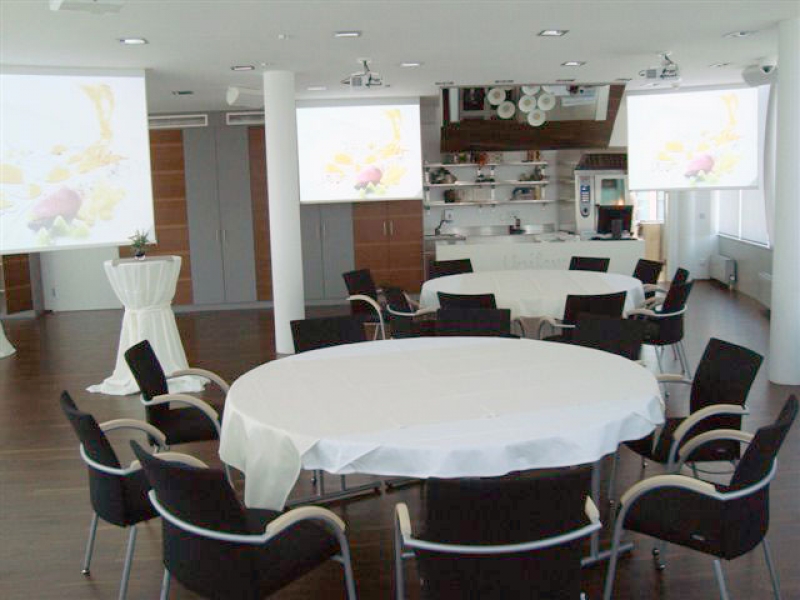 3-fach Projektion, Medien-Server für Präsentation und Internet Live-Streaming und Aufzeichnung, Liveübertragung mittels mehreren steuerbaren Kameras, Beschallung und Mikrofonie mit digitaler Signalverarbeitung, einfachste Bedienung durch perfekt angepasste Mediensteuerung. Verschiedene Betriebsszenarien für Kochshows, Präsentationen und Seminare.